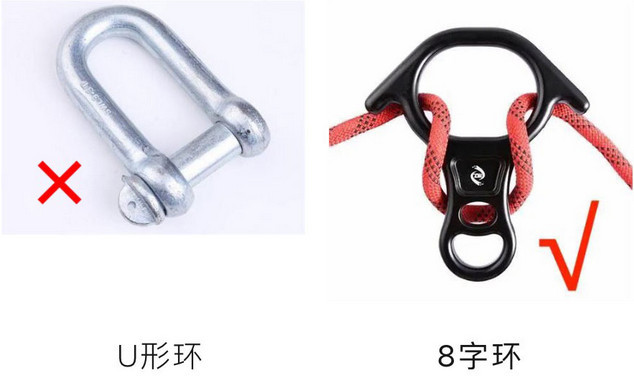 一、U 形環(huán)軸的螺紋有方向,需正確安裝在工作繩上,工作時繩子給軸的摩擦力使軸越擰越緊。一旦裝反了,工作時繩子給軸的摩擦力使軸越來越松,極可能造成高空墜落。