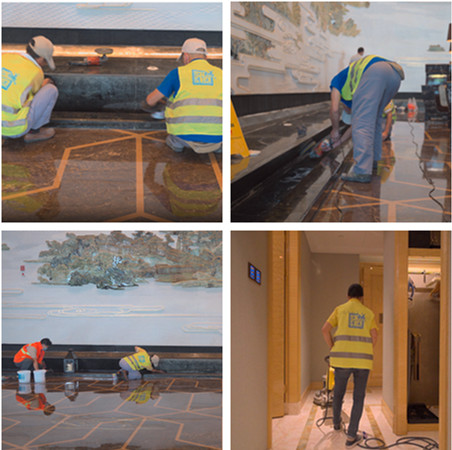 江城清洗擁有經(jīng)驗(yàn)豐富的石材養(yǎng)護(hù)團(tuán)隊(duì),熟知各類(lèi)石材特性與養(yǎng)護(hù)需求。運(yùn)用...設(shè)備和技術(shù),針對(duì)萬(wàn)達(dá)瑞華酒店的大堂、走廊、客房等區(qū)域,定制多套養(yǎng)護(hù)方案,解決現(xiàn)有問(wèn)題并延長(zhǎng)石材使用壽命。選用環(huán)保型養(yǎng)護(hù)材料,對(duì)人體與環(huán)境無(wú)害,不影響酒店正常運(yùn)營(yíng)及客戶(hù)入住體驗(yàn)。經(jīng)深層清潔、拋光、封釉等工藝,讓酒店石材地面和墻面重?zé)ü鉂桑纬捎行ПWo(hù)層,抵御污漬滲透和日常磨損。