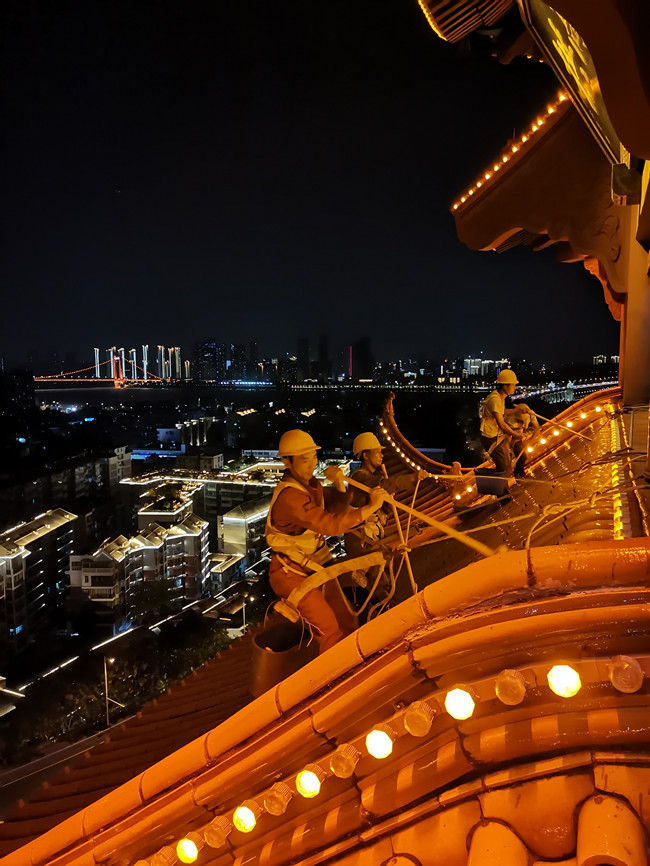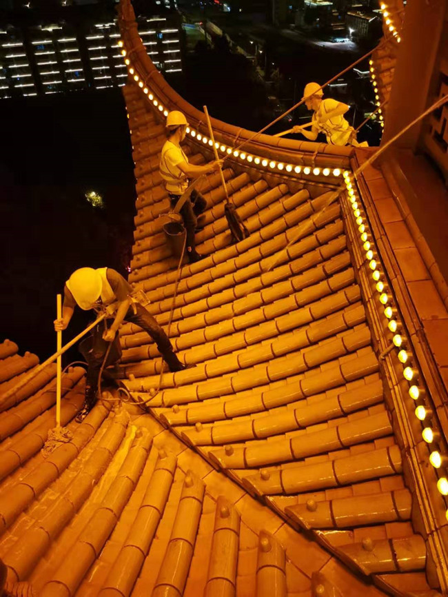 為了不影響白天游客的正常游玩,我們的外墻清洗師傅們選擇在夜間施工,實(shí)現(xiàn)了對(duì)游客完全的零打擾服務(wù),但同時(shí)也對(duì)此次的清洗作業(yè)帶來了一定難度。